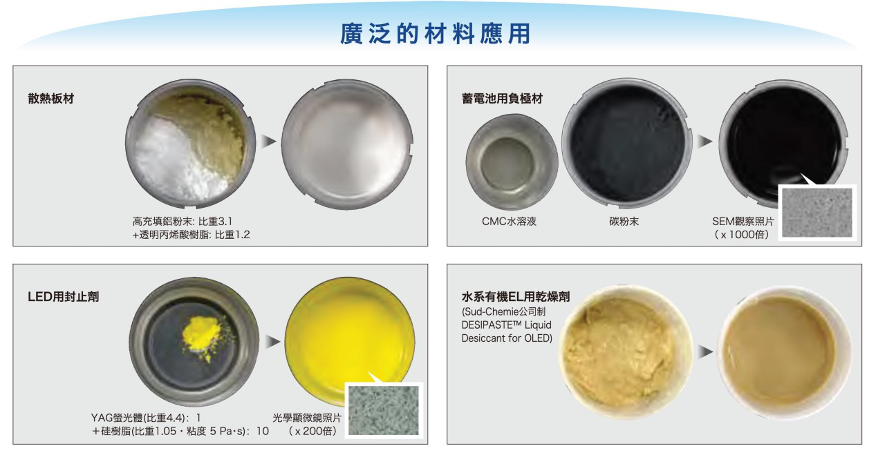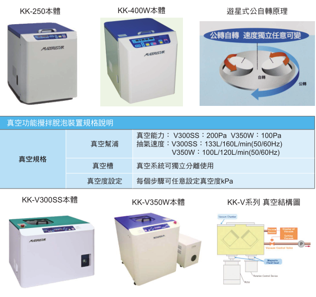 1. 公自轉轉速可分別調整,可有效抑制溫度上升,穩定材料